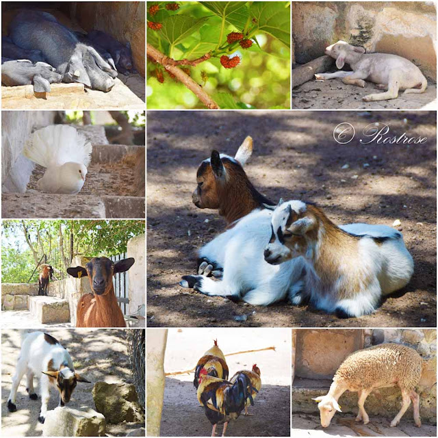 Den jungen Ziegen, ihren Müttern und dem Geflügel schien es noch recht gut zu gehen, die waren in einem relativ großen eingezäunten Bereich zu Hause, in dem es Erde und Gras gibt. Aber die schwarzen Schweine, die Schafe mit ihren Lämmern und einige größere Ziegen hatten nichts als einen nackten Betonboden, auf dem sie gehen, stehen, liegen konnten - ganz ohne Einstreu und mit nur sehr wenig Schatten. Auch die Esel, die eigentlich relativ viel Platz hatten, wirkten vernachlässigt und irgendwie traurig - sie taten uns allesamt sehr leid ... und sie waren nicht die einzigen Tiere auf der Insel, die wir bedauerten (siehe PS).